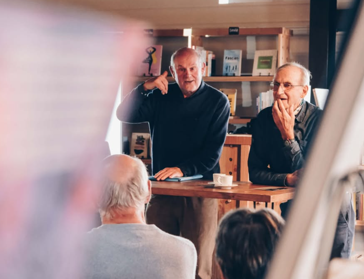 Dans une ambiance conviviale et chaleureuse, le café-librairie devient un lieu de rencontre où se croisent les idées, les histoires et les savoir-faire. Ici, nous prenons le temps : celui d’écouter, de discuter, de goûter, et de tisser du lien.